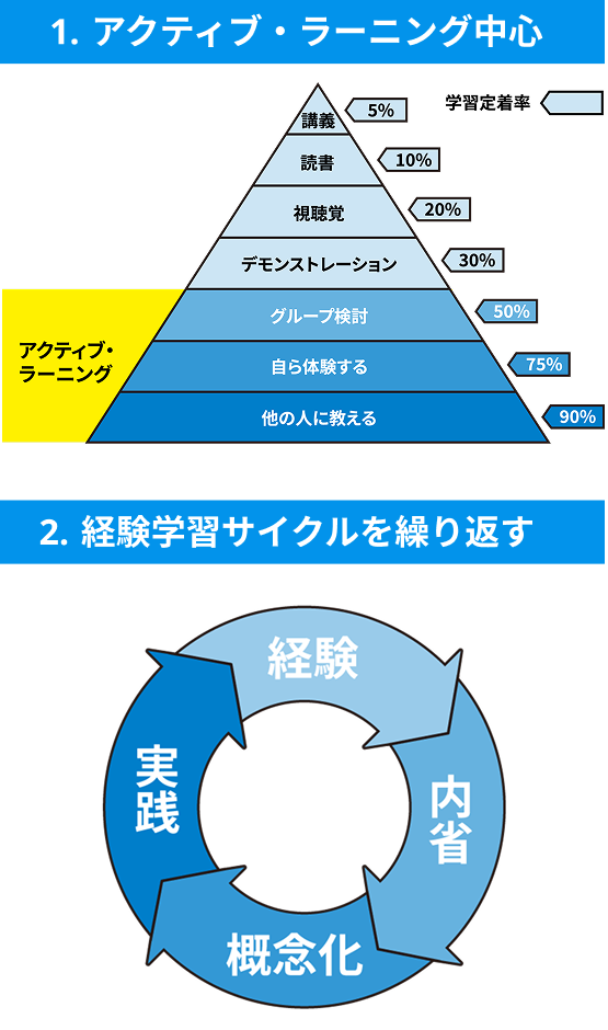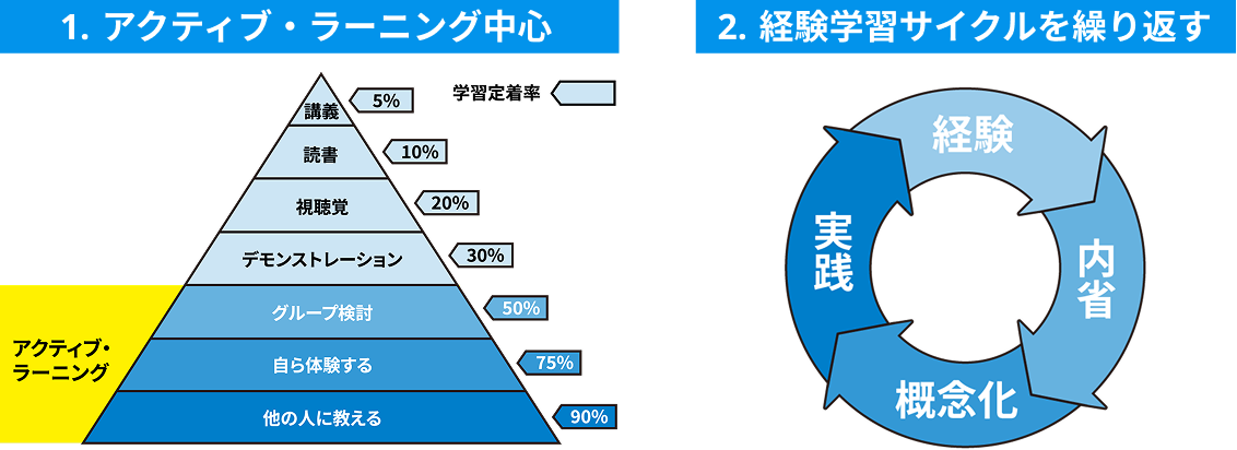 アウトプット重視、経験と内省を繰り返し定着する研修設計です