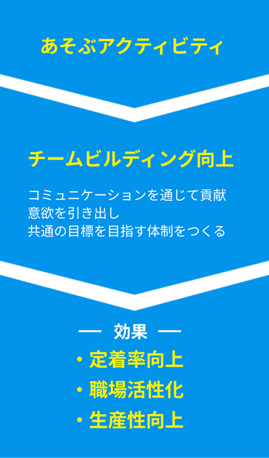 あそびのアクティビティでコミュニケーションを促進、チームの貢献意欲を引き出し、定着率向上に繋げます