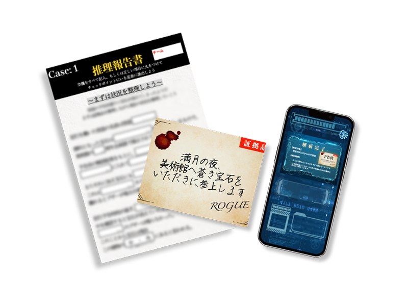 様々な証拠品や証⾔を整理・分析・共有し、事件の真相に辿り着くことを⽬的とした体験型推理ゲームです。⼤量の証拠品を元に犯⼈を特定していく論理的な思考だけではなく、真実を導くためには⾃⾝の推理も疑うクリティカルシンキングが必要となってきます。