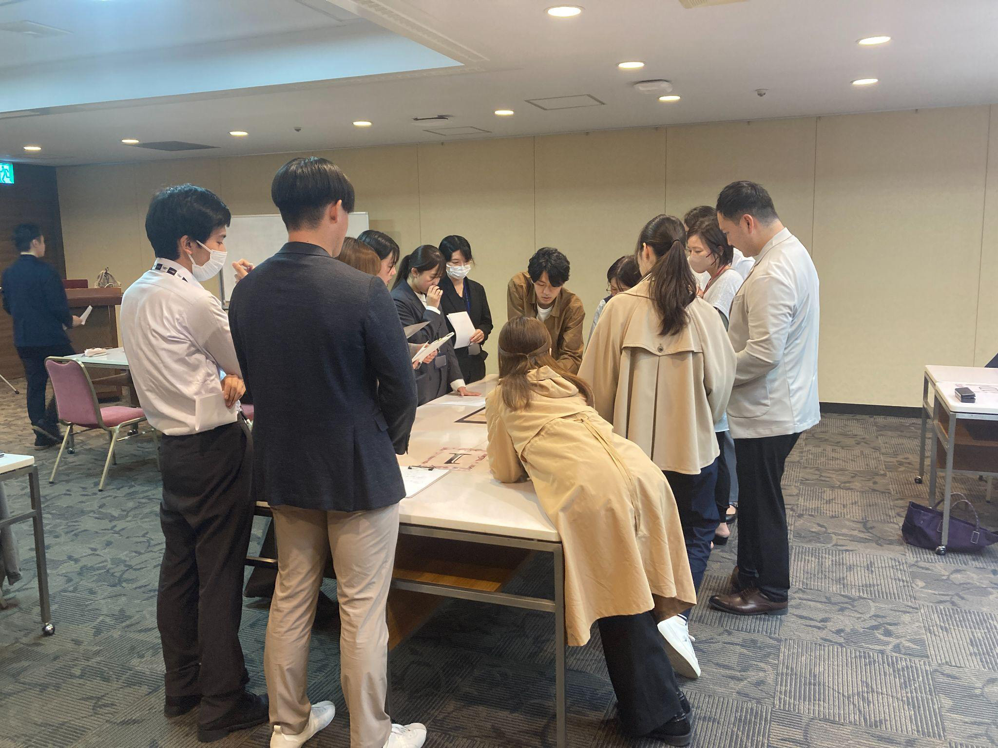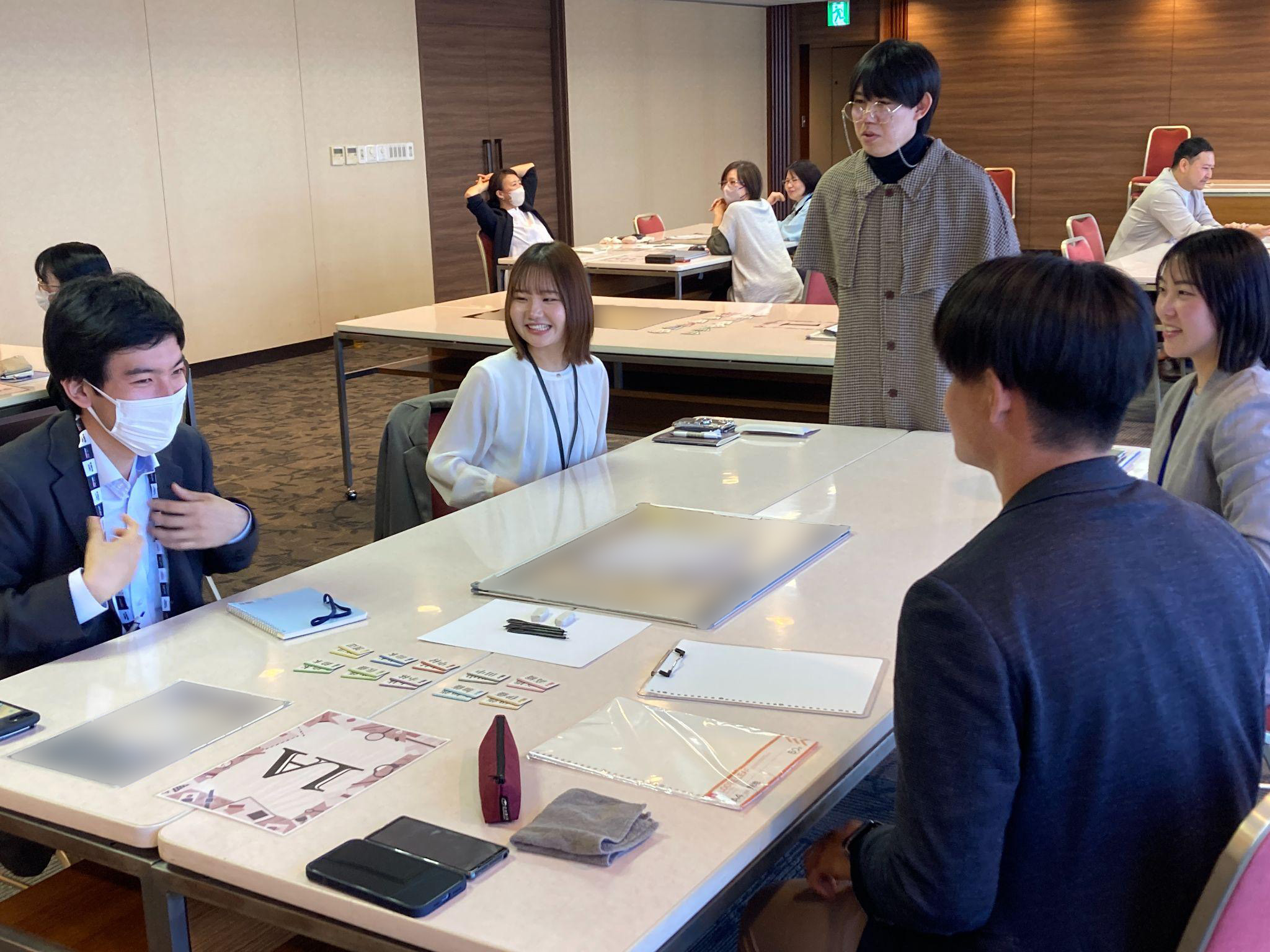 あそぶ社員研修 > 事例記事 > ロジカルシンキング > 新入社員が論理的思考を体感し、実務での活用イメージを持てるロジカルシンキング研修 静岡新聞社・静岡放送 新入社員が論理的思考を体感し、実務での活用イメージを持てるロジカルシンキング研修 研修内容 ロジカルシンキング 階層 新入社員・若手 受講人数 〜50名 業種 運輸・通信業金融業 研修を実施した目的感覚的な思考に偏りがちな新入社員に、論理的に考える力を身につけてもらう実践を通じてロジカルシンキングを体感し、自走できる思考の土台をつくるチームで協力しながら課題を整理・分析する力を養い、現場で活かせる力にするIKUSAを選んだ理由ロジカルシンキングを実践的に身につけられる研修だと思ったから座学だけでなく、楽しみながら参加できるアクティビティも行う点に魅力を感じたからアクティビティと学びがしっかり結びついている点に興味を持ったから研修実施後の成果・感想受講者がロジカルシンキングの必要性やアプローチ方法を実感し、実務への応用イメージを明確に持てたアクティビティを通じて自分の思考の癖に気づくことができ、また仕事への姿勢やチーム内の関係構築にもよい変化が生まれたMECEやロジックツリーなどのフレームワークを通じて、営業・採用・取材など現場での活用を想定できた2025年4月、静岡新聞社様と静岡放送様合同の新入社員研修の一環として、「あそぶ社員研修」の「ロジカルシンキング研修」を実施していただきました。アクティビティは、「リアル探偵チームビルディング」を行いました。静岡新聞社様と静岡放送様は、それぞれ新聞発行・出版・印刷、テレビやラジオなどの放送事業を手がける静岡県のメディア企業です。研修は、静岡新聞社ビルの17階展望会議室で開催しました。ゲームの要素を取り入れて、主体性とチームワークを同時に育むプログラムは、ロジカルシンキングを実践的に学びながら、新入社員同士の関係構築や、既存社員との交流の機会としても有意義な研修となりました。ロジカルシンキング研修の資料を受け取る感覚的思考から、論理的に考える力を「自分のもの」に静岡新聞社様と静岡放送様は例年、新入社員が感覚的な思考に偏りがちであることに課題を感じられていました。論理的に考える力を育てる必要があるとお考えでしたが、これまでロジカルシンキングに特化した研修は実施していなかったそうです。そこで、選ばれたのが「あそぶ社員研修」です。座学だけではなく、楽しみながら学べるアクティビティと一体型である点が決め手になりました。IKUSAの研修は、受講者自身が体験を通して学びを得られるのが特徴です。アクティビティとその後の講義が自然に結びつく構成になっており、研修中の行動や思考がそのまま職場で使える力に変換されます。一方的に知識を伝えるだけでなく、アクティビティを通して学びを自分のものにできる実感を持たせられます。小グループで推理、全体で共有。思考と対話が交わる時間本研修には、新入社員6名と既存社員6名が参加しました。先輩後輩が混ざり、3人ずつの4つの小グループに分かれ、リアル探偵チームビルディングのプログラムの1つ「消えた資料と不明な持ち主」に挑みました。なかには探偵の衣装で参加し、雰囲気づくりに一役買った先輩社員もいて、和やかなムードでスタートしました。リアル探偵チームビルディングは、受講者同士で情報を整理・共有しながら協力し、真相にたどり着くことを目指す体験型の研修です。特徴的なのは、アメリカの社会心理学者が提唱した「ジグソー法」というグループ学習の方法を取り入れている点です。それぞれが異なる情報を持ち、互いに教え合いながら答えに近づいていく手法で、アクティブラーニングの一種として注目を集めています。今回のゴールは、断片的な情報を持ちより、正しい座席表を作成することです。最初は小グループごとに情報を整理し、ある程度座席表を埋めていきます。その後、大グループに移動して情報を持ち寄り、グループ間での情報共有と推理を繰り返します。2〜3回の情報交換を経て、再び小グループに戻り、自分たちの答えを導き出すという流れです。座席表を埋めるという一見シンプルな課題ですが、同じ苗字のメンバーもおり、限られた時間のなかで確実に答えに辿り着くのは容易ではありません。優先順位をつけて情報の取捨選択をする必要があります。受講者の皆さんは、真剣に、かつ楽しそうに取り組んでいました。大グループでの推理タイムでは、先輩社員との会話も活発になりました。配属前に先輩と交流することで、新入社員の不安や緊張も和らいだことでしょう。あっという間に制限時間が終わり、各チームでまとめた推理を発表しました。今回クリアできたのは1チームのみ。正解できなかったチームには「完璧を求めすぎ、必要な情報以外も埋めようとしてしまった」といった原因が見られました。受講