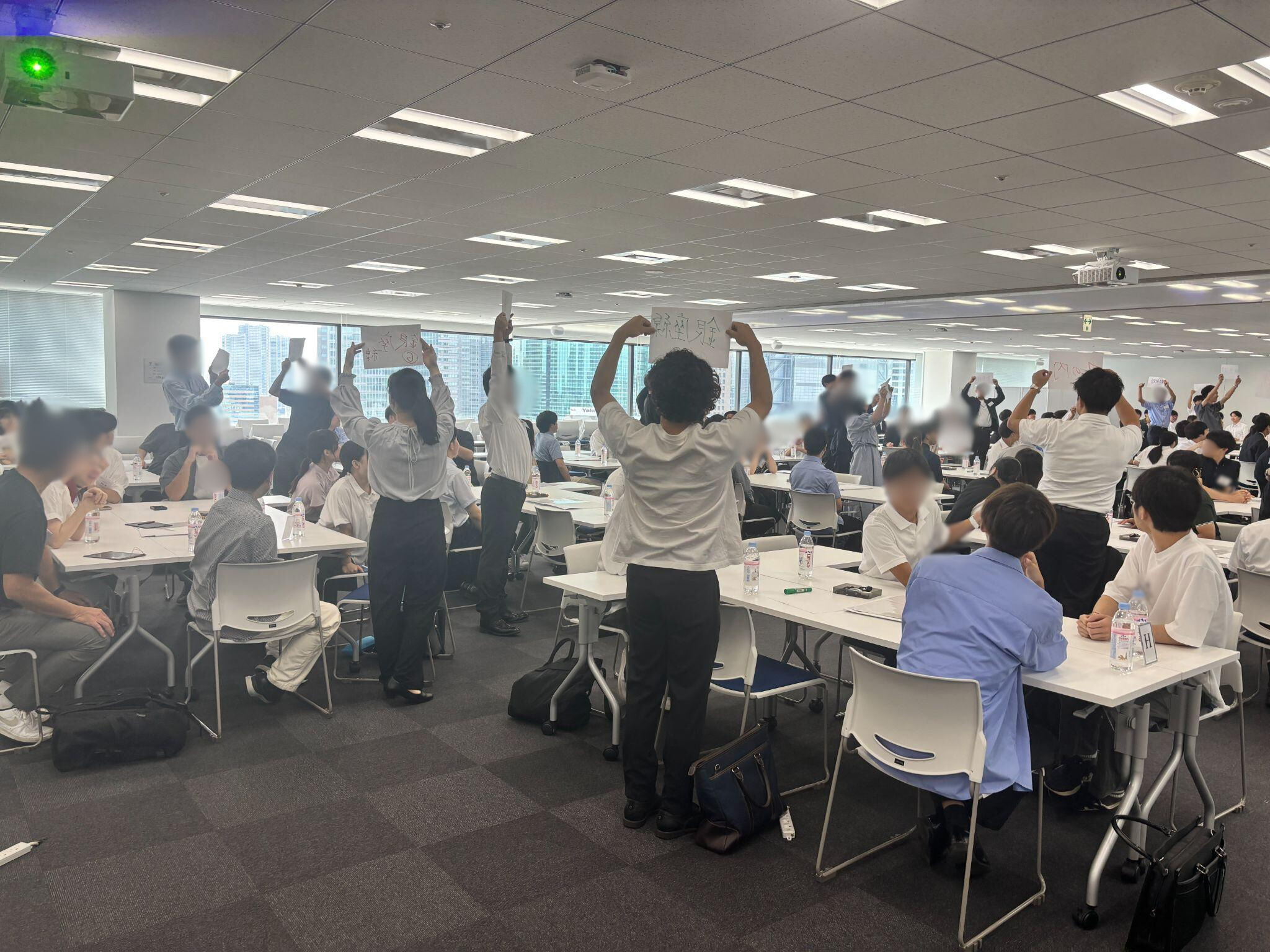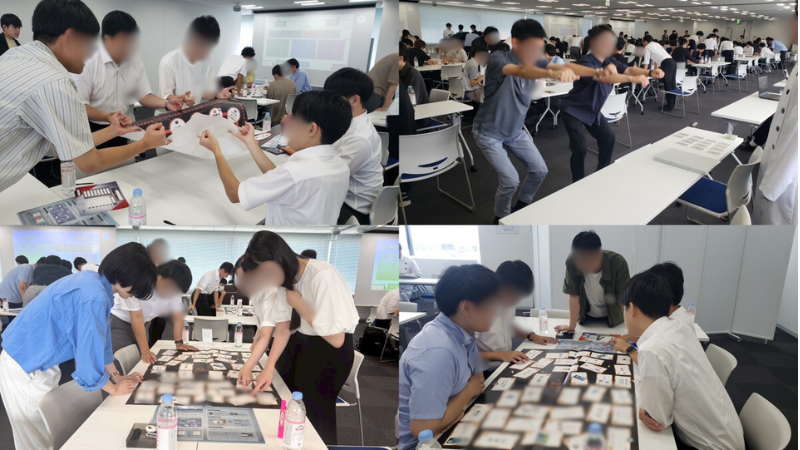あそぶ社員研修 > 事例記事 > 内定者交流 > 【計3日間実施】内々定者イベントで早期にチームワークを育み、入社への期待感を醸成 東京地下鉄株式会社 【計3日間実施】内々定者イベントで早期にチームワークを育み、入社への期待感を醸成 研修内容 内定者交流 階層 内定者(内々定者)・学生 受講人数 のべ約175名 業種 運輸・通信業 研修実施前の課題 ゲームを通して楽しみながら仲を深め、内々定者の入社に対する不安を払拭したい あそぶ社員研修を選んだ理由 内々定者同士の交流を重視しており、IKUSAのサービス内容と目的が一致していたから 幹事様自身が体験会に参加し、楽しさや効果を実感したから 参加者同士の距離を、自然に縮められるアクティビティだと感じたから 導入後の成果・効果 参加者同士が積極的に交流し、楽しみながら関係を深められた 参加者から「去年も同じような交流がしたかった」との声が上がるほど満足度が高かった ゲームの後に、簡単な振り返りがあり学びにも繋がったのが非常によかった 東京の都市交通を支える鉄道事業者として知られる東京地下鉄株式会社様の内々定者イベントにて、「謎パ」「ロケットPDCAチャレンジ」「ミッションスクランブル」を実施していただきました。今回は、7月下旬に2日連続でイベントを実施し、また8月上旬には別職種で1日開催の内々定者懇親会を実施しました。内定者同士の距離を自然に縮められると実感した幹事様は、内々定者同士の交流を深め、入社に向けた準備を進めていただくための施策を検討されておりました。その中で、弊社の体験会を通じて「参加者同士の距離を自然に縮められる」と実感していただき、実施に至りました。体験を通じて交流が深まり、学びが定着する全3回の内々定者イベントここからは、各日の様子を詳しくお伝えします。【7月下旬開催】1日目:謎パ1日目に実施したのは、チームで謎を解きながら協力を深めるアクティビティ「謎パ」です。謎パは、メンバー同士で情報を共有しながら謎のかけらを集め、ミッションをクリアしていく体験型謎解き脱出ゲームです。謎を解くためにはコミュニケーションが欠かせないため、自然とチーム内で協力する雰囲気が生まれます。ミッション内容は自由に設定でき、企業オリジナルの要素を取り入れることも可能です。そのため、会社理解を深めたい内々定者イベントや、新人研修にぴったりのアクティビティです。まずは、出身地や趣味、今日の意気込みを交えた自己紹介からスタート。アイスブレイクでは「ポーズ合わせましょう」に挑戦し、お題は地下鉄にちなんだ「駅係員のポーズといえば?」でした。惜しくもポーズは揃いませんでしたが、息を合わせて同じポーズを取ろうとすることで、自然と笑顔が生まれ、場の緊張も和らぎました。会場の雰囲気が温まったところで、いよいよ本格的に謎パへと進んでいきます。謎パでは、謎解きのほかにも風船やけん玉を使ったミッションが行われ、会場は活気に包まれました。特に盛り上がりを見せたのが、オリジナルミッション「地下鉄の駅名を被らずに言おう!」。同じ駅名を言ってしまったり、違う駅名を言ったりすると、審判役の幹事様から「ストップ!」の声が入り、笑いが起こる場面も。自分のミッションを終えても他のメンバーを応援したり、失敗した仲間の代わりに挑戦したりする姿も見ることができ、自然とチームの一体感が生まれていました。緊張しがちな内々定者イベントでも、謎パを通して打ち解け、距離がぐっと縮まったようです。【7月下旬開催】2日目:ロケットPDCAチャレンジ2日目に実施されたのは、「ロケットPDCAチャレンジ」。ロケットPDCAチャレンジは、チームで月に行けるロケットを制作・改善しながら、PDCAの過程を学べるアクティビティです。ロケットPDCAチャレンジは、以下の流れで進めていきます。ミッションミニゲームでロケットの資金を稼ぐ長く飛べる最適なパーツを買うパーツを組み合わせてロケット発射(スクリーンで投影)結果を受けて改善し、再チャレンジチームで意見を出し合い、試行錯誤しながら成果を出す過程を体験できます。PDCAサイクルの重要性や、チームで目標達成に向かう力を実践的に学べるのが特徴です。アイスブレイクでは、前の人の自己紹介を重ねていく「積み木自己紹介」を実施。まずは名前のみで一周、続いて「名前+好きなもの」で一周し、和やかな雰囲気の中で少しずつ緊張がほぐれていきました。ミッションミニゲームでは、知力や運、集中力が試されるミッションに挑戦しました。参加者それぞれの得意・不得意が垣間見え、思わず声が上がる場面も多く、会場は終始とても盛り上がりました。幹事様が自らミッションの担当を務める場面もあり、現社員と内々定者が交流しながら取り組む姿も印象的でした。チームごとに進め方はさまざまで、慎重に作戦を立てるチームもあれば、試行を重ねてテンポよく発射を繰り返すチームも。失敗を次に活か
