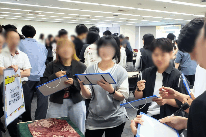 事例 日鉄テックスエンジ株式会社 相互理解を深めて新卒社員の結束力を高め、配属先で必須となる自己発信スキル・傾聴スキルを習得 研修内容 コミュニケーション 階層 新入社員・若手 受講人数 〜50名 業種 建設業 株式会社カオナビ アクティビティでの学びが講義で定着。明日から使えるクリティカルシンキングが身につく研修 研修内容 クリティカルシンキング 階層 全階層 受講人数 〜50名 業種 情報処理・提供サービス業 日本情報通信株式会社 受講者が同期との絆をより深め、実践的な学びを得てクリティカルシンキングを業務で活用 研修内容 クリティカルシンキング 階層 新入社員・若手 受講人数 〜50名 業種 情報処理・提供サービス業 チームビルディング 株式会社NVC様 グループ間の垣根を越えて交流を深める。全員参加型「謎パ」で主体性を引き出すフォローアップ研修 研修内容 チームビルディング 階層 新入社員・若手 受講人数 51〜100名 業種 情報処理・提供サービス業 1