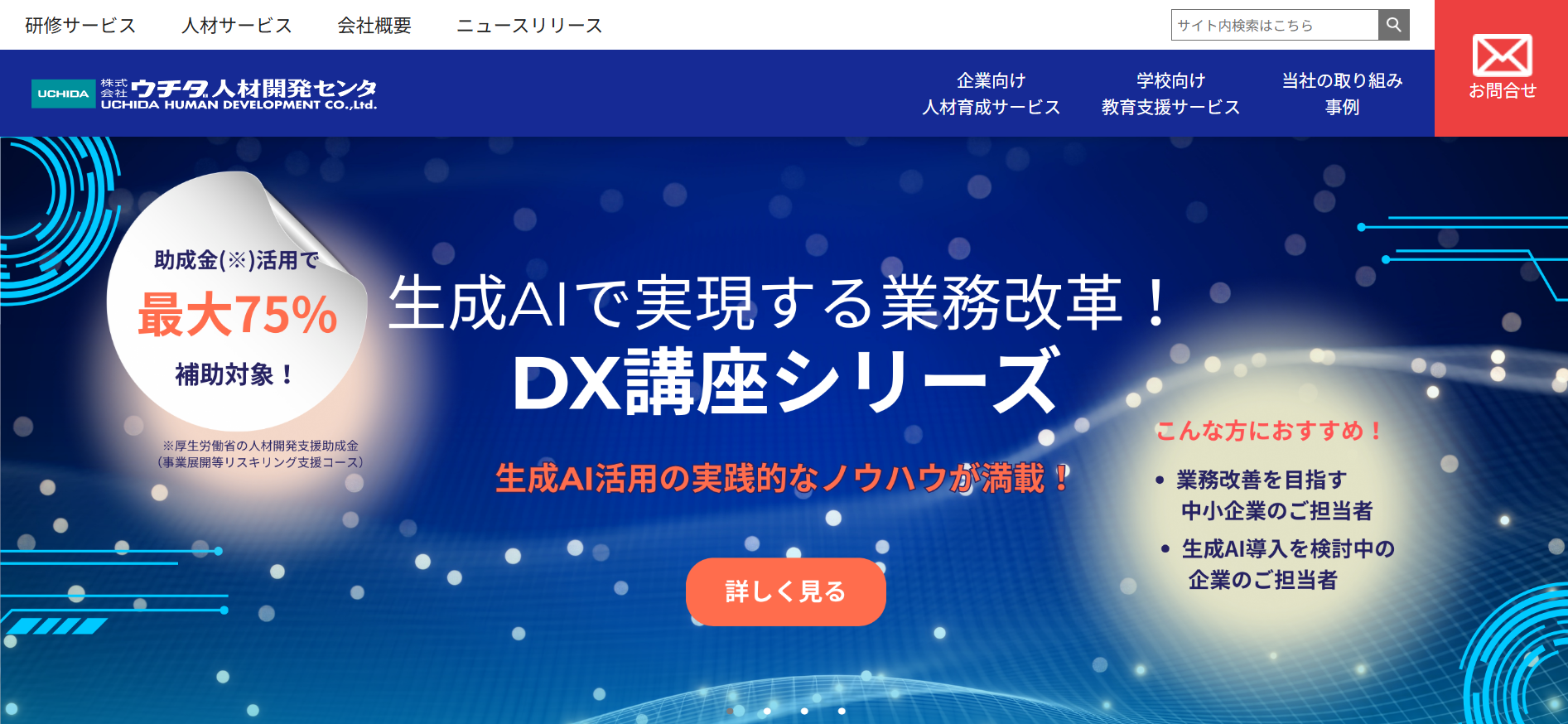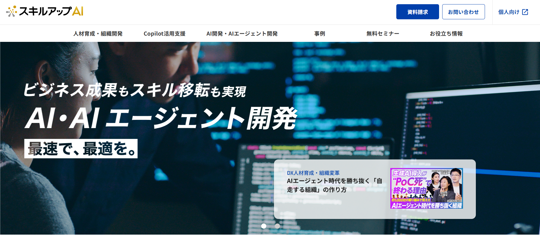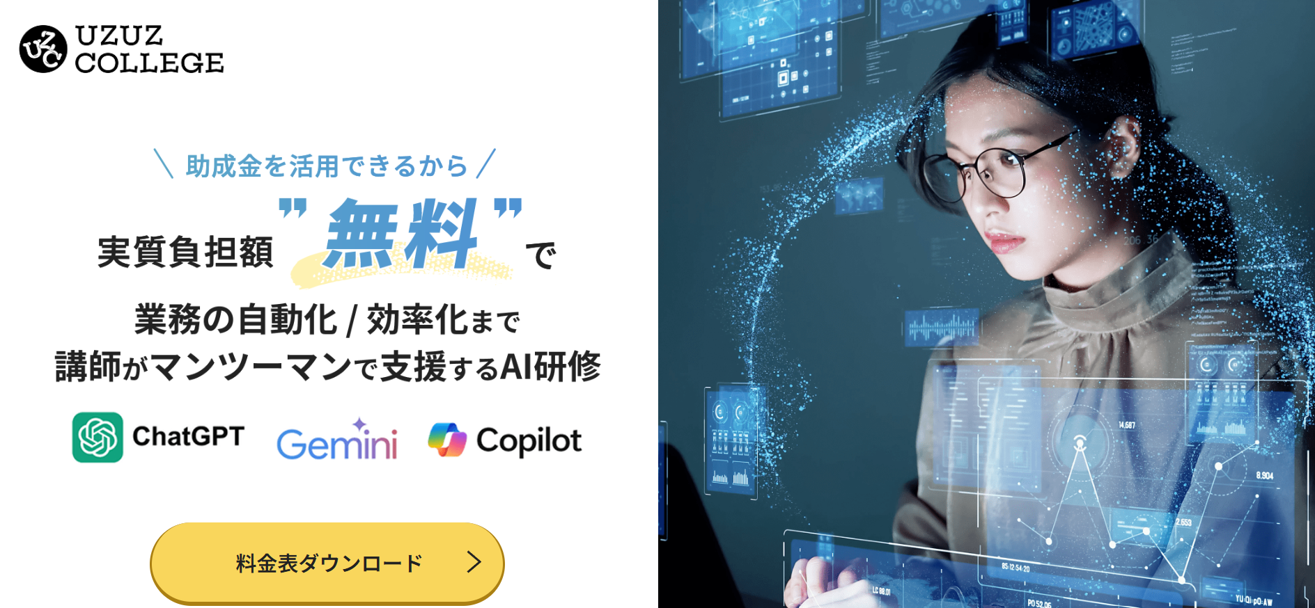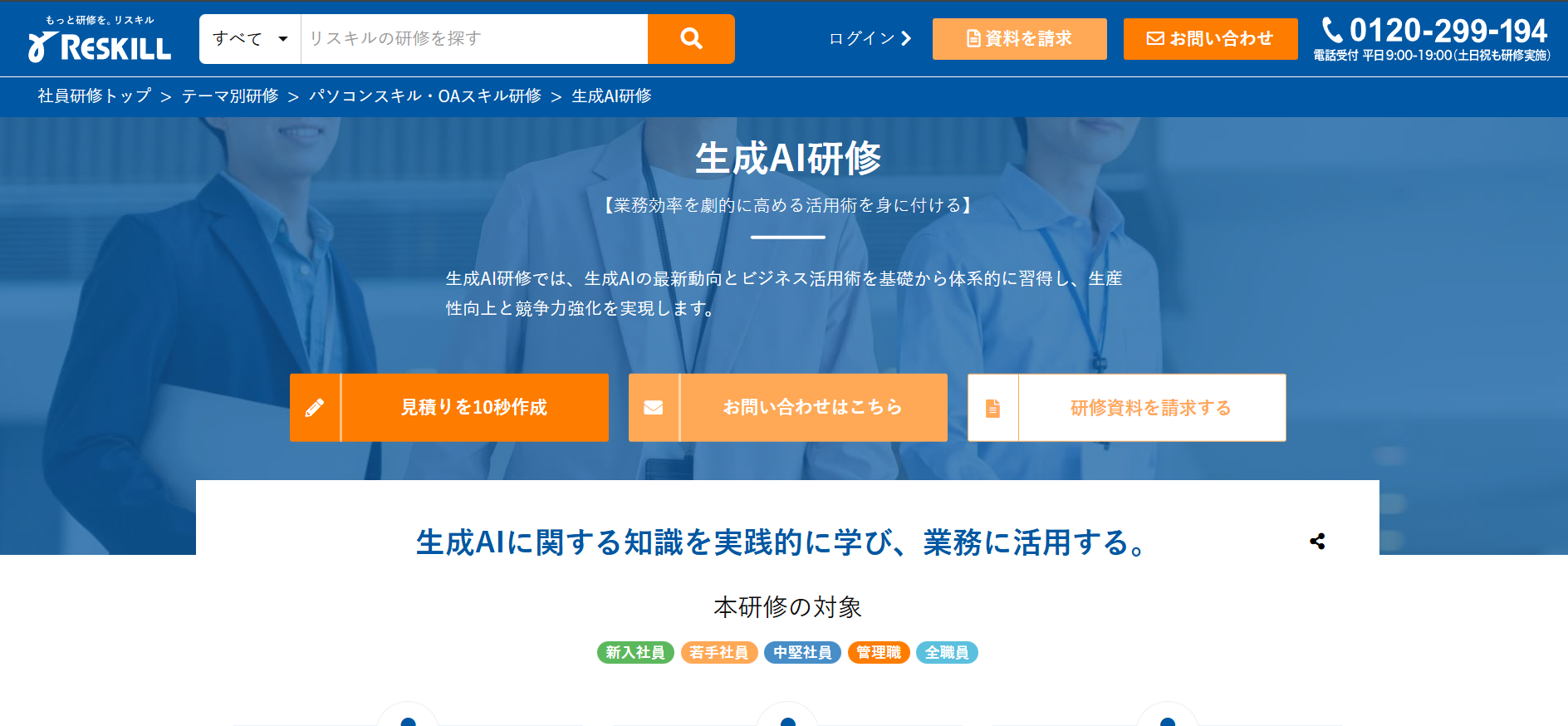 あそぶ社員研修 > お役立ち情報 > ビジネススキル > AI研修サービスのおすすめ20選を紹介!各社の特徴やサービス内容を解説 AI研修サービスのおすすめ20選を紹介!各社の特徴やサービス内容を解説 2026.02.03 ビジネススキル組織・人材開発 研修社会人基礎力 年々、急速に進化するAI。時代のスピードについていくため、企業においてもAIを活用する知識やスキルを有する人材を確保することの重要性が高まってきています。本記事では、「自社でもそろそろAI人材の育成に取り組んでいきたい」と考えている研修担当者様に向けて、おすすめのAI研修サービス20選をご紹介いたします。※本記事に記載の情報は2025年11時点のものです。各研修サービスの最新情報は公式サイトにてご確認ください。 研修ゲームで楽しく自分事化し、プロ講師によるワークで実務と結びつける 「あそぶ社員研修 総合資料」を無料で受け取る 目次AI研修サービスのおすすめ20選まとめAI研修サービスのおすすめ20選では早速、おすすめのAI研修サービス20選を紹介していきます。1.トレノケート株式会社トレノケート株式会社は、IT技術教育やビジネススキル教育など、人材育成に関するソリューションを提供している会社です。公式サイトによると、年間約1,600社との取引実績があり、1,600以上の多彩な研修コースを展開しています(2025年5月現在)。AI関連では、AIの基礎から学べる研修や、生成AIの活用に向けた研修、AIの活用法を企画・立案する力をつける研修、さらにはAIの開発・運用力を身につける研修まで、幅広く用意されています。集合研修に加えてeラーニングも提供しているため、業務の合間に手軽にAIを学びたい方にもおすすめの研修サービスです。公式サイト:人材育成の専門企業トレノケート|IT研修、ビジネス研修、資格対策2.株式会社インソース株式会社インソースは、講師派遣型研修や公開講座、eラーニングなどの教育サービスを提供している会社です。組織がAIをうまく活用していくためには、特定の人材だけでなくさまざまな階層・部門の人材がAIに関する知識を持つことが重要です。そのため株式会社インソースでは、階層別や部門別に幅広いAI研修を用意しており、習熟度に応じて最適な研修を提案してくれます。半日で終わるプランもあれば、2週間かけてDX人材を育成するコースもあります。研修ラインナップが豊富であるため、目的に合う研修をきっと見つけられるでしょう。公式サイト:株式会社インソース|社員研修・ITによる生産性向上支援3.DMM 生成AI CAMP「DMM 生成AI CAMP」は、DMM.com グループの株式会社インフラトップが運営するオンラインスクールです。短期間で、生成AIに関する知識を身につけることができます。生成AIをビジネスでうまく活用するために必要なスキルは、大きく2つあります。1つは、AIに適切な指示や質問を与えるためのプロンプトエンジニアリング、もう1つは、生成AIを活用したアプリを開発するスキルです。「DMM 生成AI CAMP」では、プロンプトエンジニアリングを学べるコースが4つ、生成AIアプリ開発を学べるコースが2つ用意されており、受講者のレベルや目的に応じて最適なコースを選択できます。公式サイト:【公式】DMM 生成AI CAMP|生成AIスクール|ChatGPTなど生成AIが学べるオンラインスクール・講座4. Algomatic AI Academy「Algomatic AI Academy」は、株式会社Algomaticが提供する、生成AI人材育成のための実務直結型プログラムです。研修は、全社員向けの生成AIリテラシー研修、生成AIセキュリティ研修のほか、経営層向け研修、リーダーやメンバー向けのAIツール活用研修、AIエージェント研修など、多様なテーマが用意されています。また「Algomatic AI Academy」の研修は、現場でAIの活用を推進・指導できる人材を育成するプログラムとなっており、専任のメンターが研修後の成果報告会までサポートしてくれます。研修で学んで終わりではないというのも、「Algomatic AI Academy」の特徴です。公式サイト:業務変革を加速する生成AI人材育成プログラム|Algomatic AI Academy5.株式会社リスキル株式会社リスキルは、ビジネスに必要なさまざまな知識・スキルを学べる研修を提供している会社です。取り扱う研修の種類は、なんと837種類もあります。どの研修も、受講人数やカスタマイズの有無にかかわらず、料金一律で実施してもらうことができます。生成AIに関する研修も多数用意されています。AIの基本を学ぶ研修や、ChatGPT、Microsoft Copilot、Copilot in Wordなどといった、AIの種類やツール別に活用法を学ぶ研修もあります。研修時間はテーマによって異なりますが、3~6時間と気軽に参加しやすい時間に設定されています。生成AIの活用だけでなく、DXを推進するためのデジタル人材育成研修も豊富です。公式サイト:社員研修のリスキル Reskill | すべての研修が『料金一律』6.ナレフルチャット「ナレフルチャット」は、CLINKS(クリンクス)株式会社が提供する法人向けの対話型生成AIチャットツールです。クローズドな環境で利用できるため